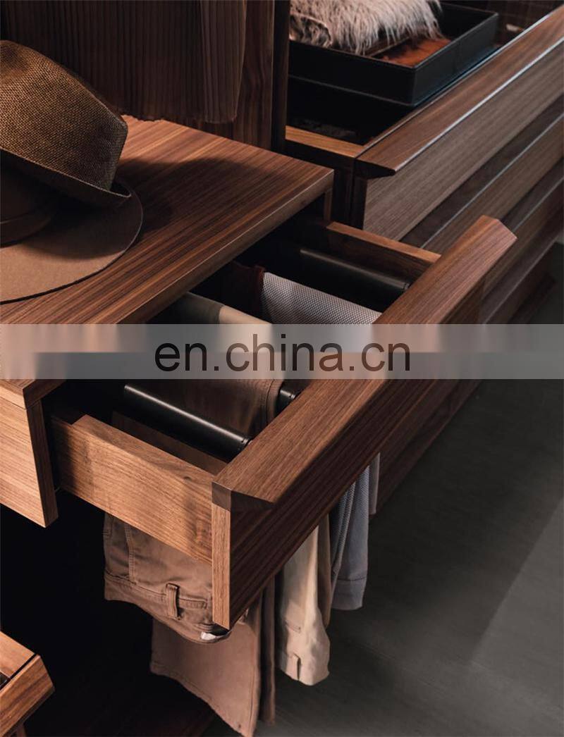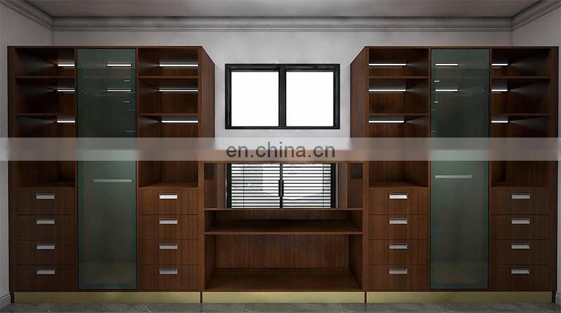Master Bedroom Luxury Italian Design Walnut Wooden Wardrobe Closet Modular Walk-in Closet With Glass Door