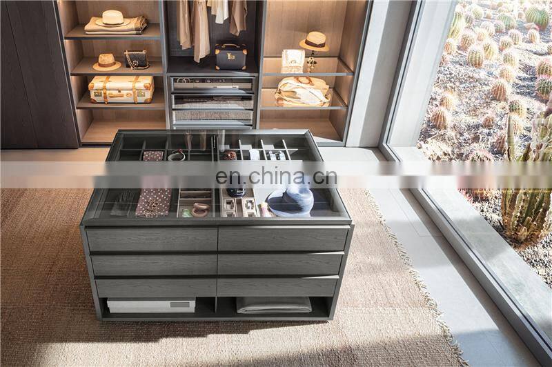 Master Bedroom Luxury Italian Design Walnut Wooden Wardrobe Closet Modular Walk-in Closet With Glass Door