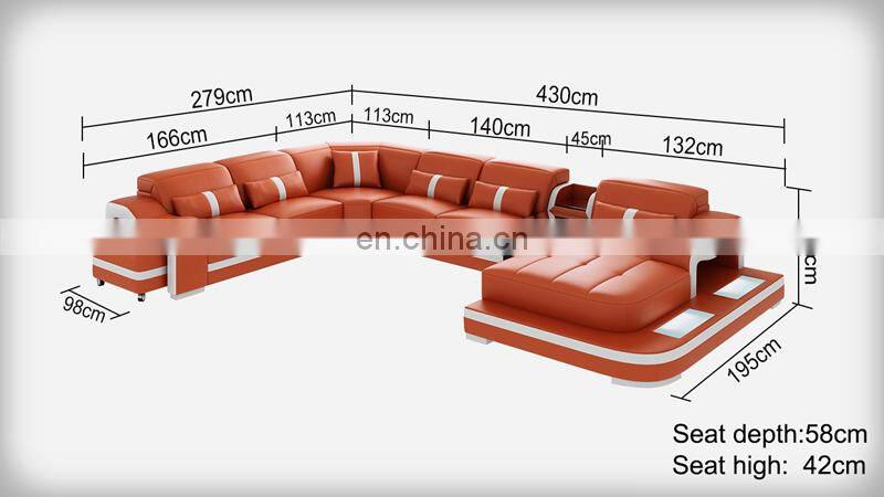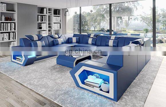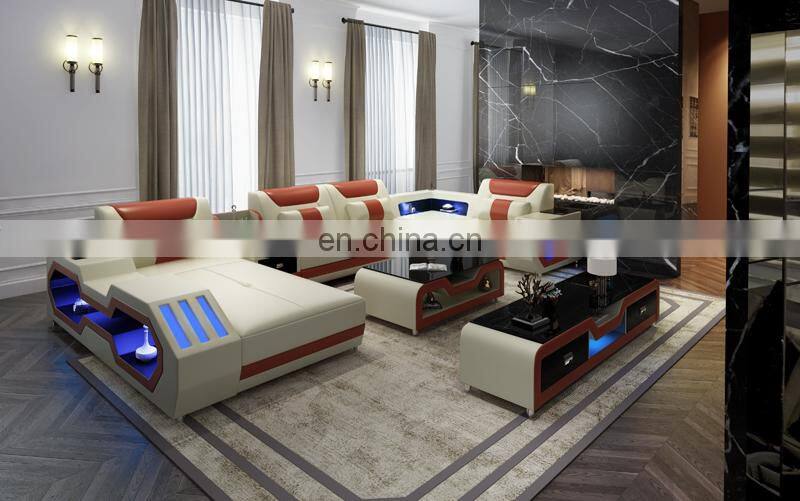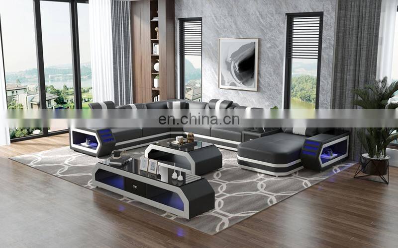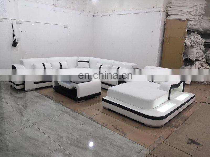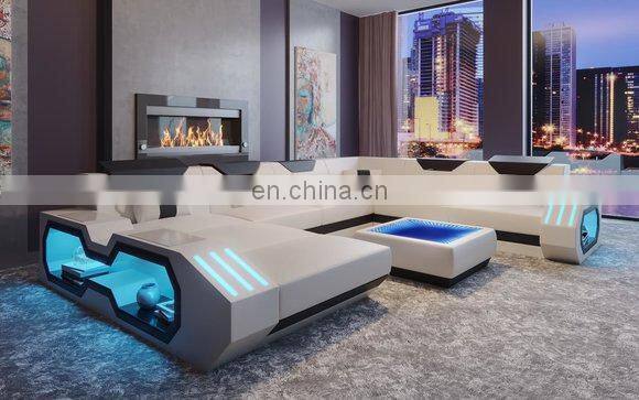 2021 Hot Sale Genuine Leather Living Room Furniture LED Light Living Room Sofas