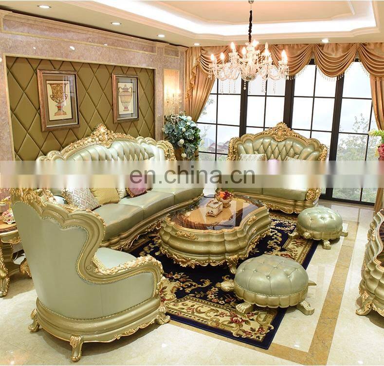 Factory Direct Luxury Hand Carved Sofa Set Furniture Leather European Style Sofa