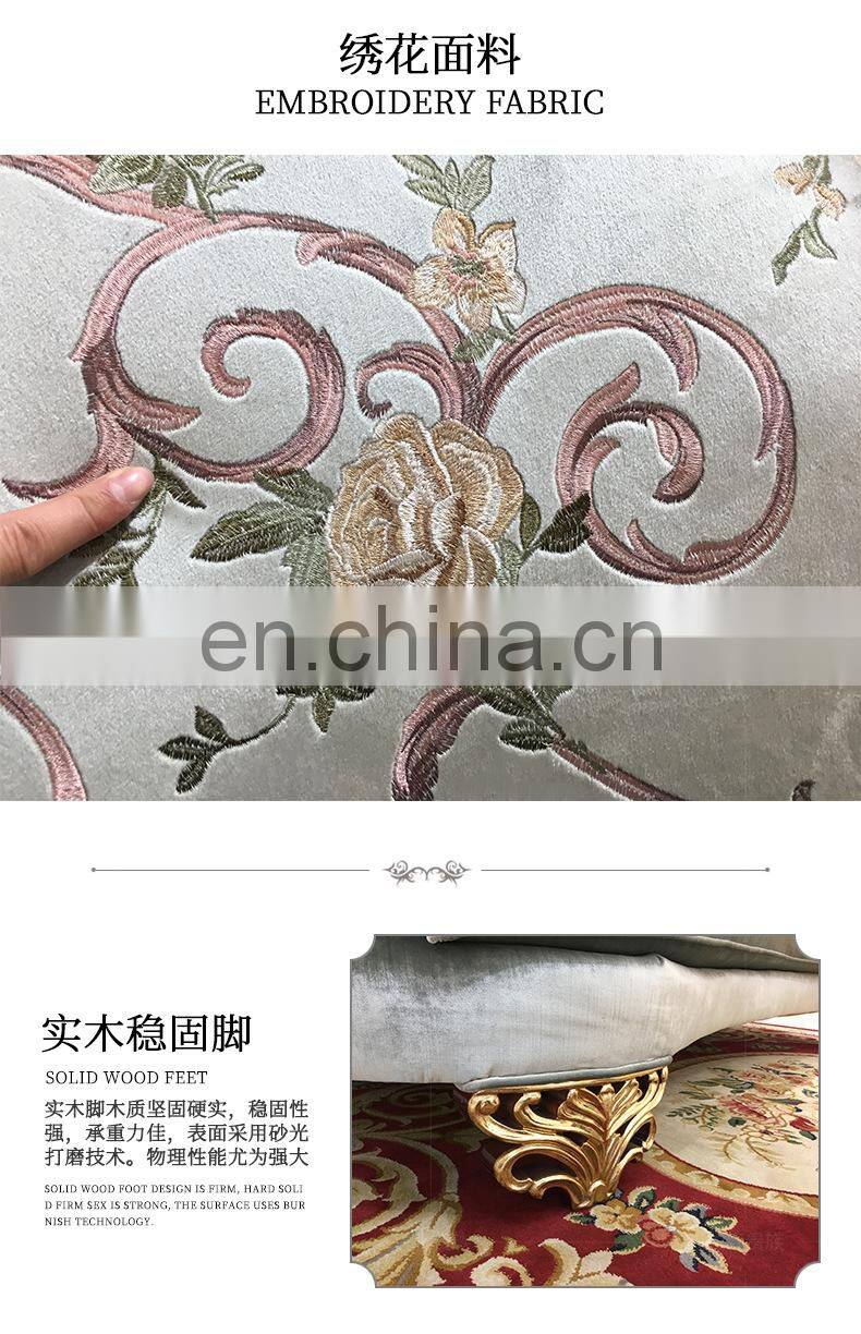 Luxury Flower Embroidered Fabric Sofa Living Room Antique Style Sofa Classic Design