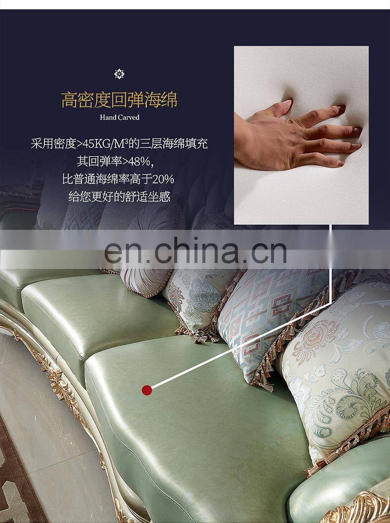 Elegant furniture european style living room furniture leather cover wooden sofa set