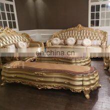 European Style Solid Wood Golden Hand Carved Living Room Furniture Leather Sofa Set