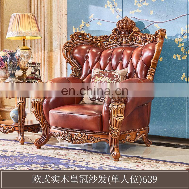 Wooden Luxury Living Room French Style Classic Sofas Royal Victorian Furniture Leather Sofa Set