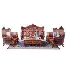 Wooden Luxury Living Room French Style Classic Sofas Royal Victorian Furniture Leather Sofa Set