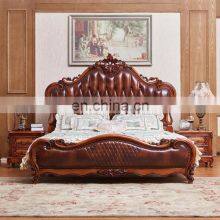 Antique Hand Carved Bed Luxury Top Quality European Style Bedroom Furniture Classical Leather Bed