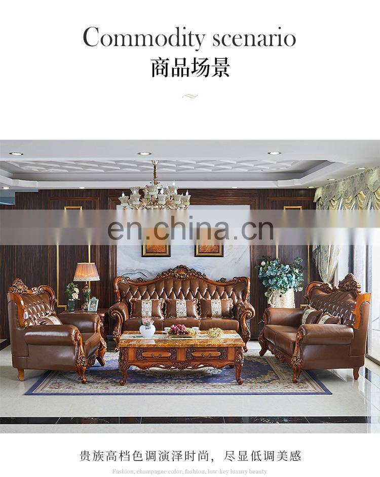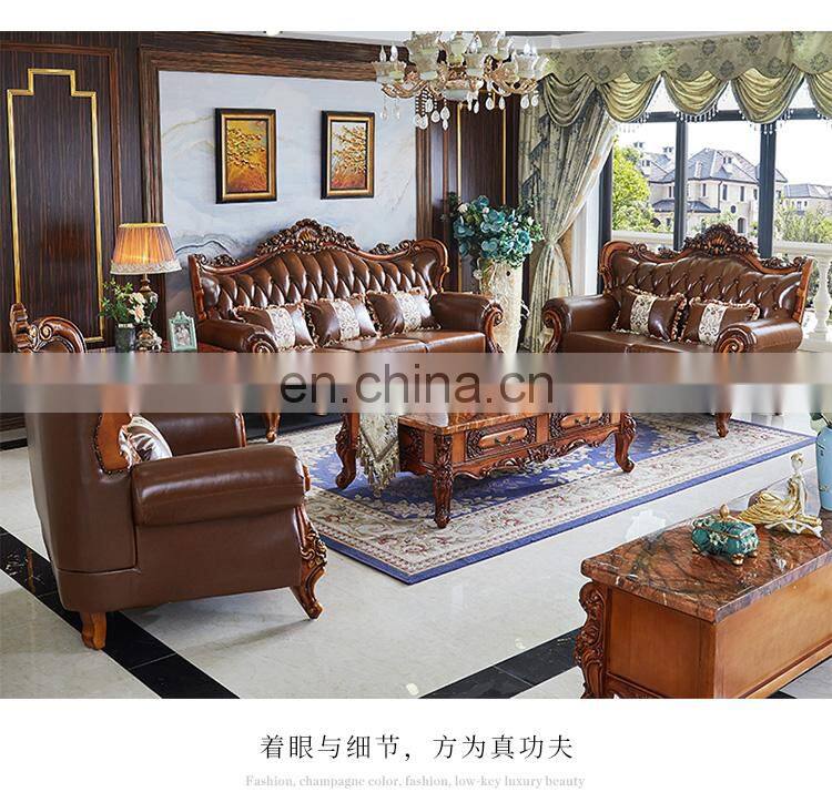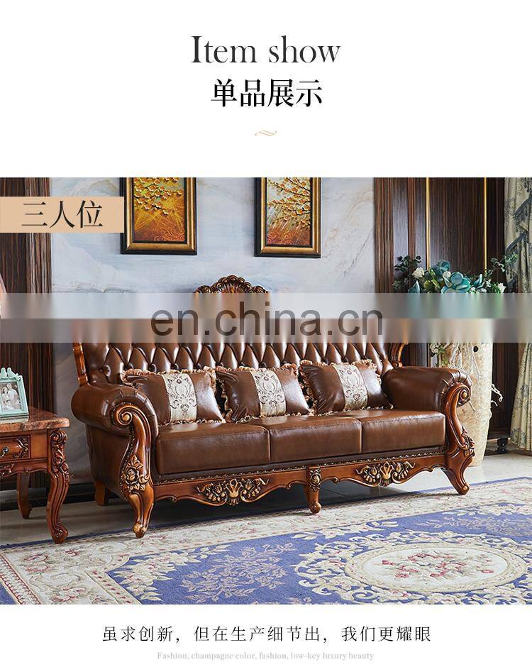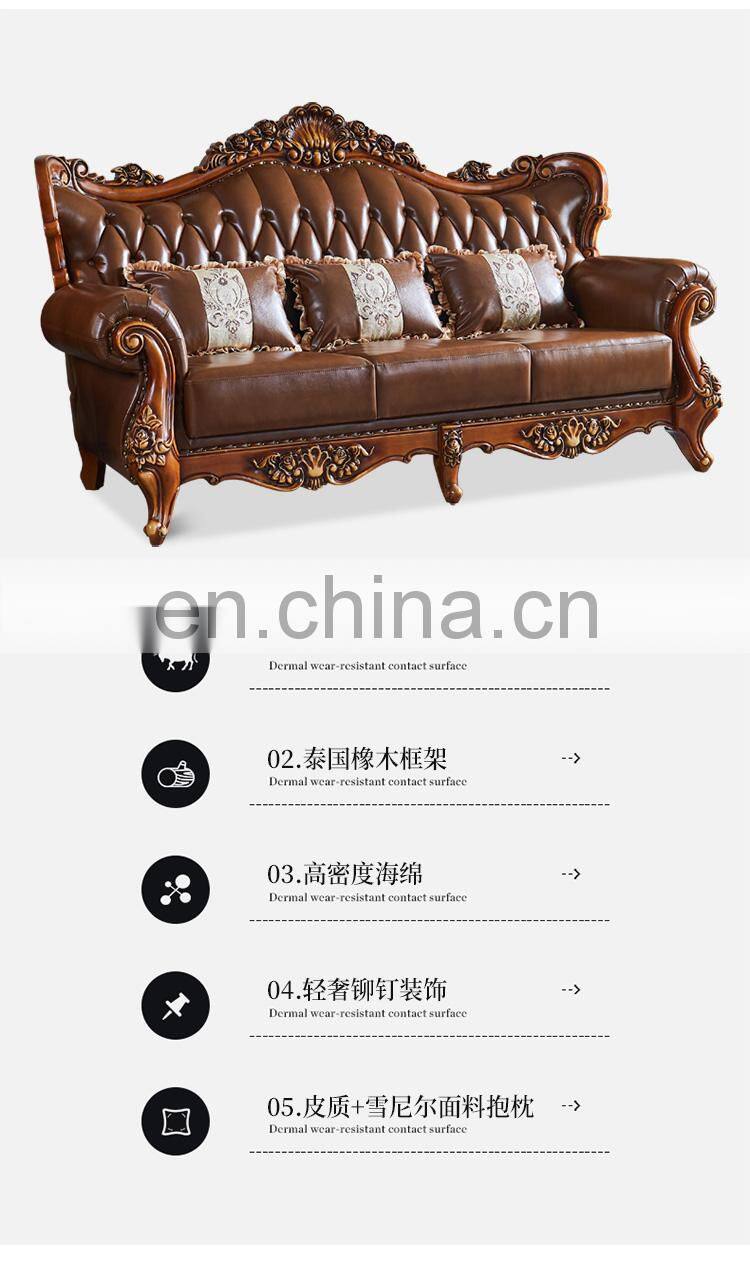 2021 New Design Antique Sofa European Style Classic Genuine Leather Sofa Sets