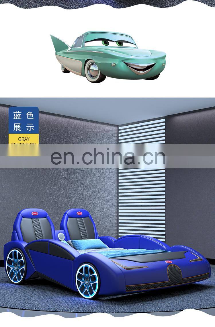 2021 Cartoon Bedroom Furniture Solid Wood Frame Kids Race Sports Car Bed Set For Children