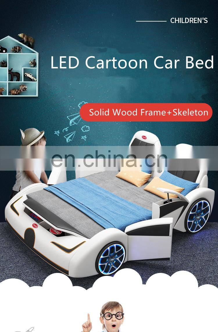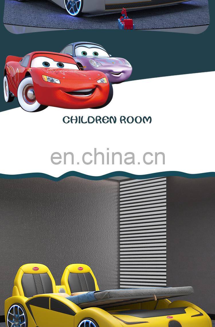 Cartoon Bedroom Furniture Solid Wood Frame Kids Race Sports Car Beds Set For Children