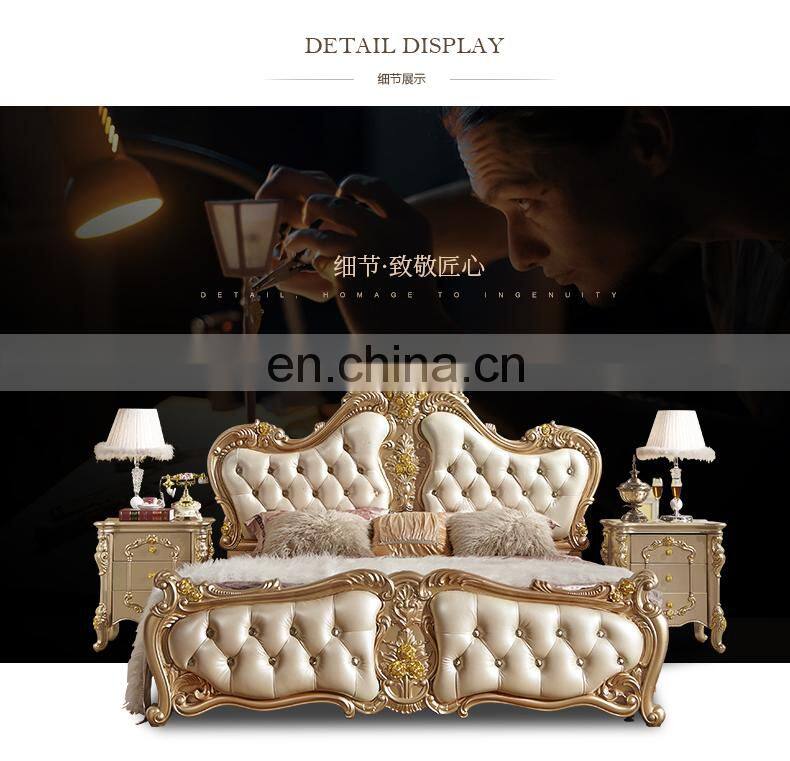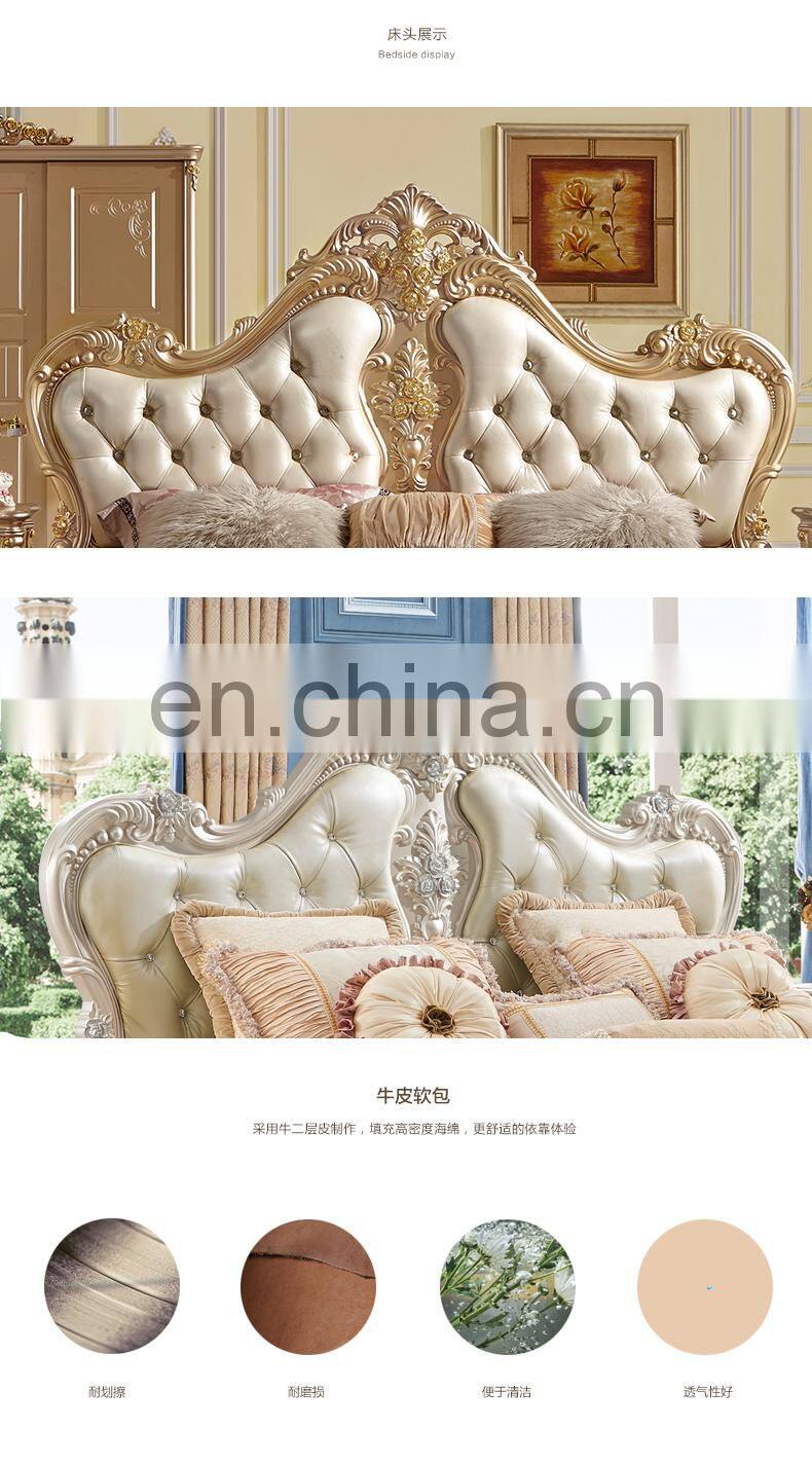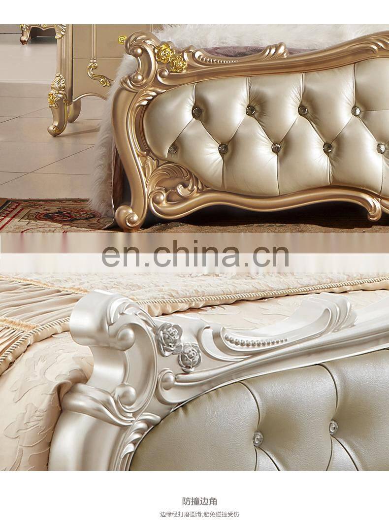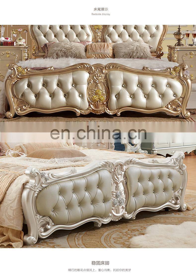 2021 New Arrivals Luxury Quality French BedrooAContemporarym Wedding King Size Wood Carving Leather Wall Bed European Style Bed