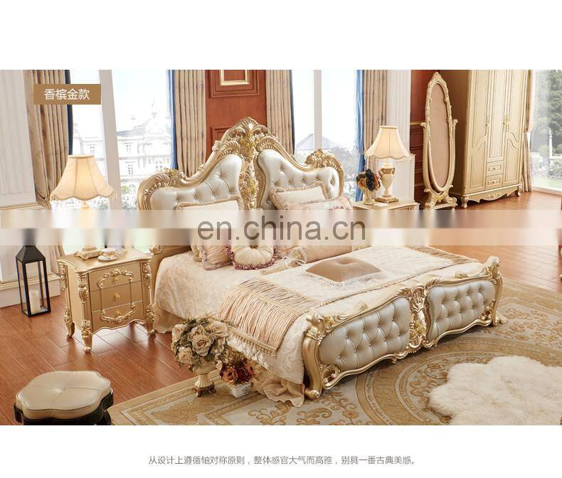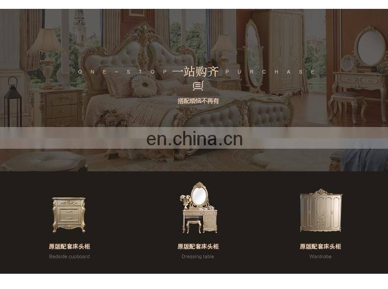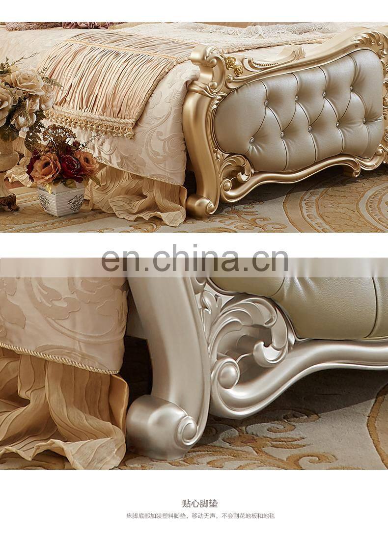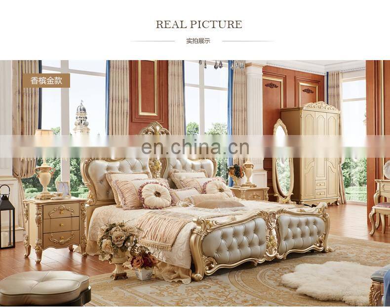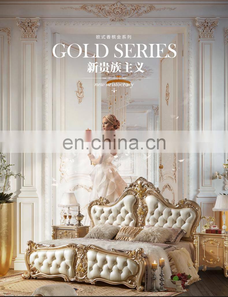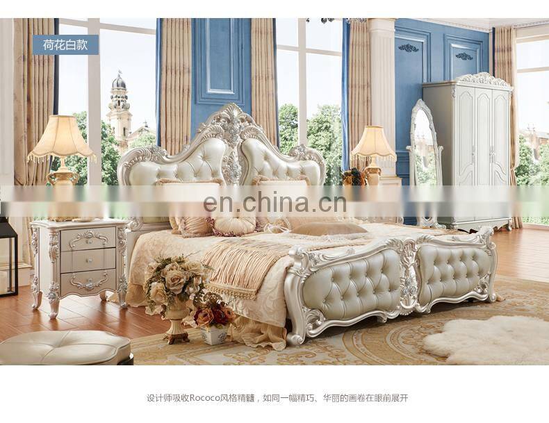 2021 New Arrivals Luxury Quality French BedrooAContemporarym Wedding King Size Wood Carving Leather Wall Bed European Style Bed