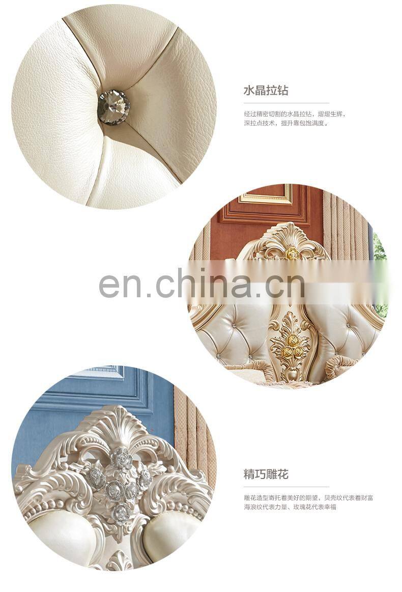 Luxury Style Antique Sofas Golden Antique Leather Living Room Sofa Set Furniture Muebles