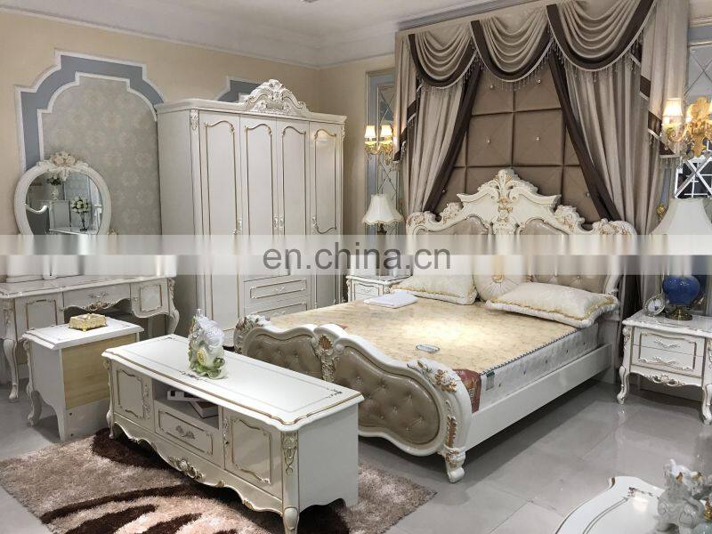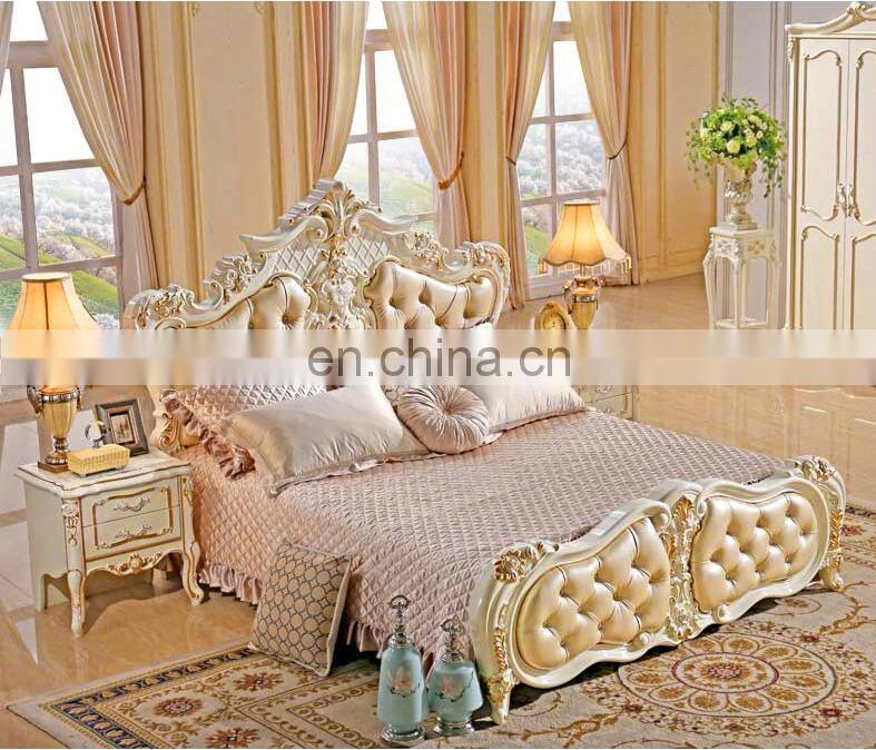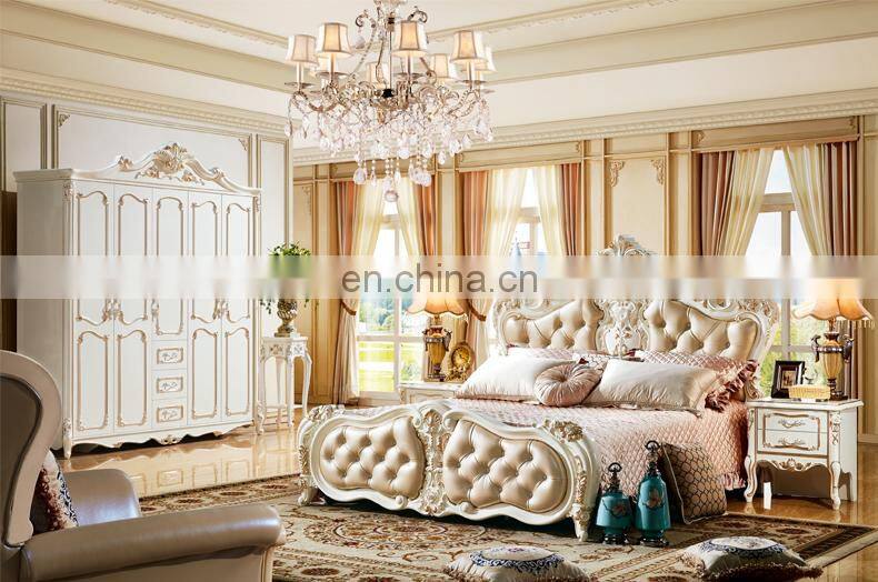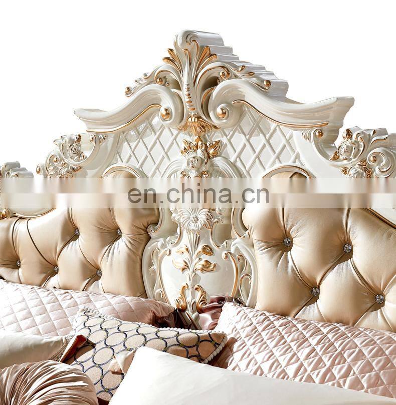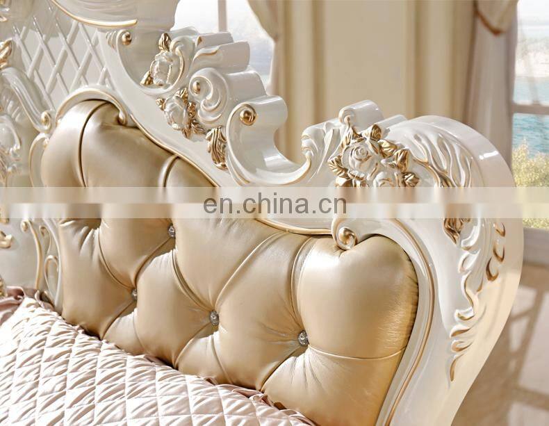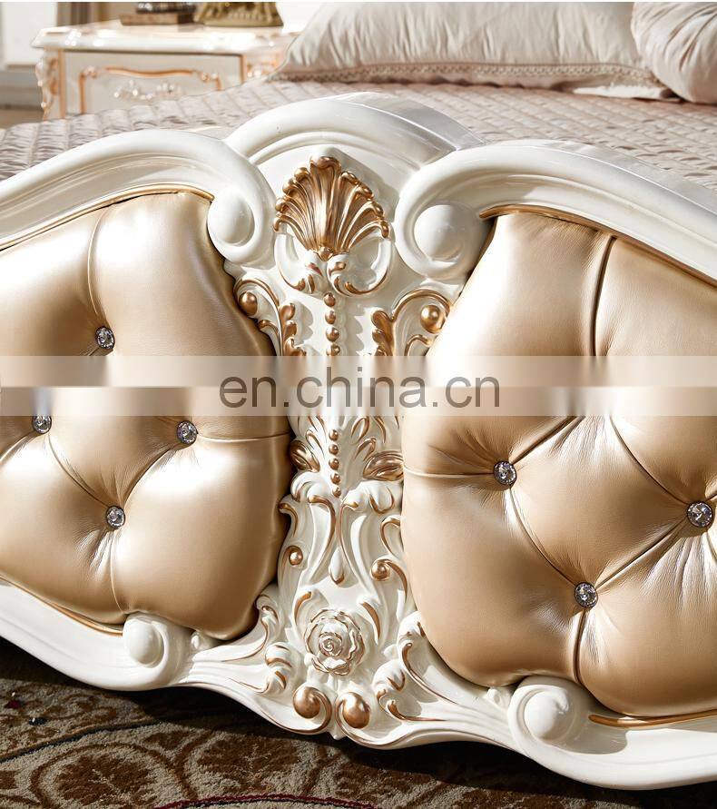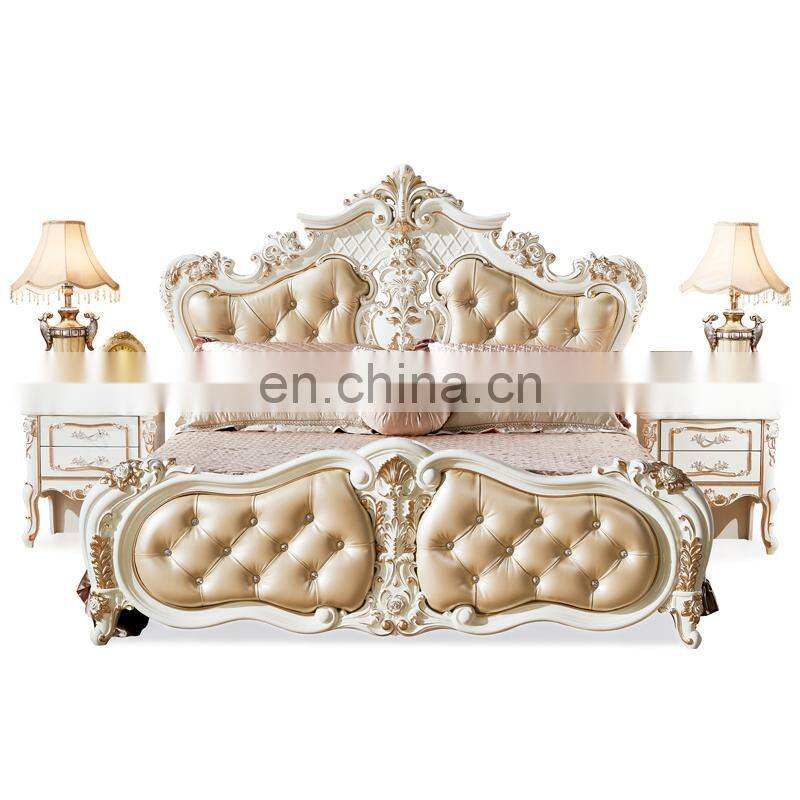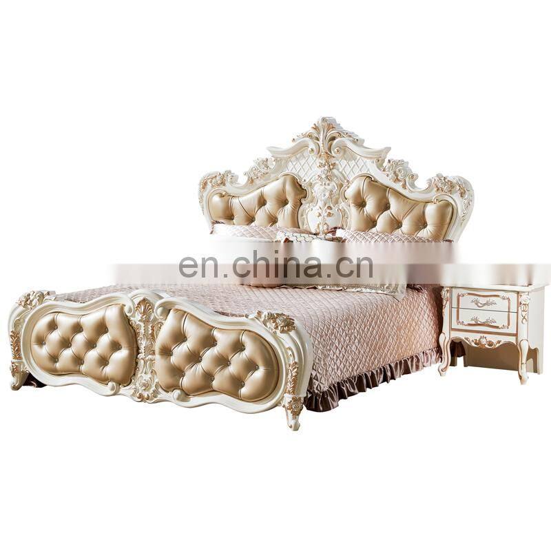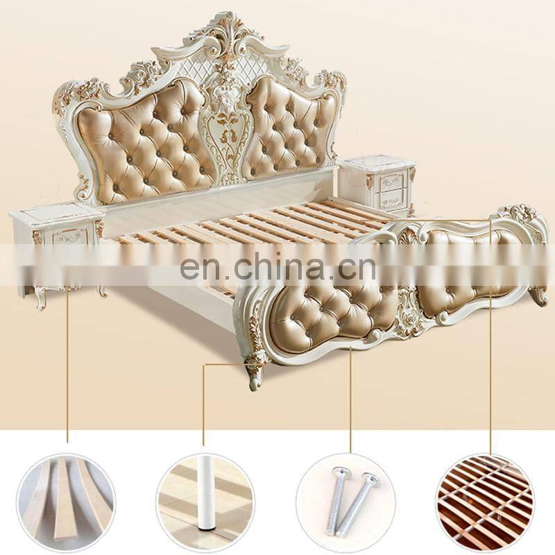 2021 New Arrivals Luxury Quality French BedrooAContemporarym Wedding King Size Wood Carving Leather Wall Bed European Style Bed