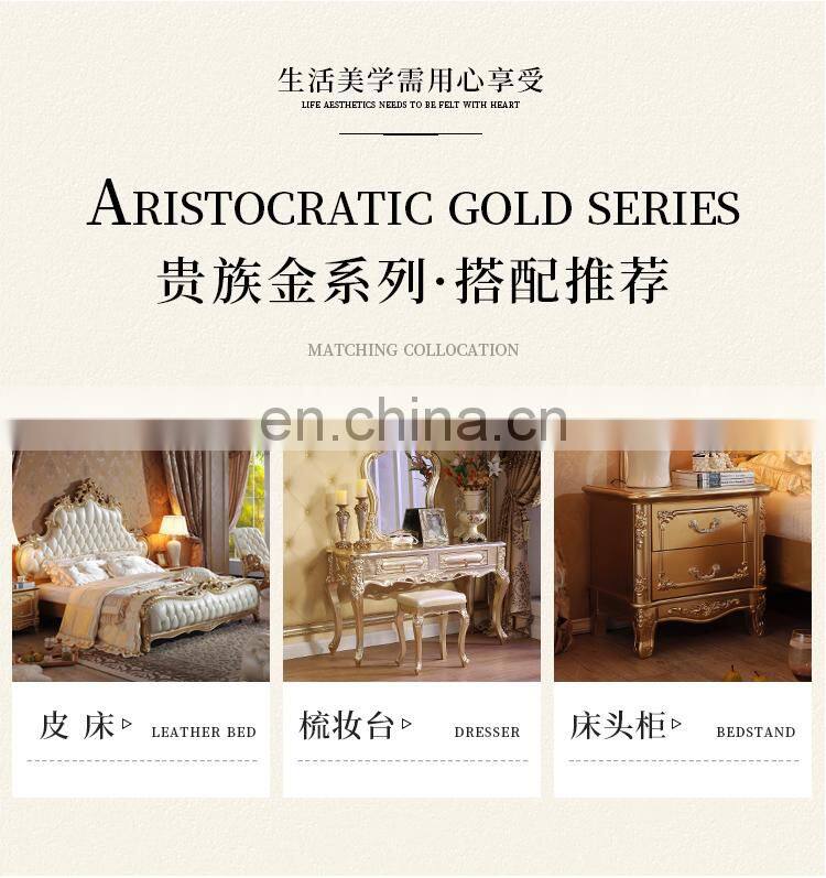 European style solid wood bedroom furniture king size double bed