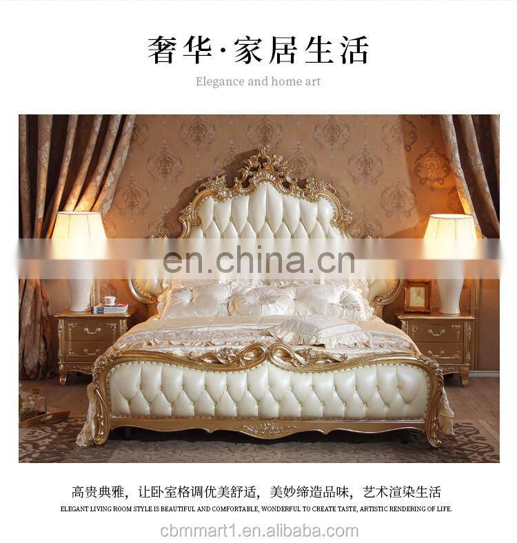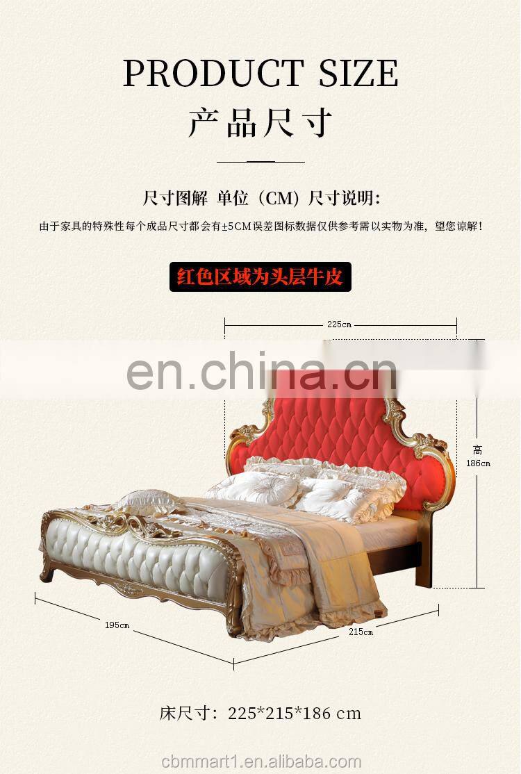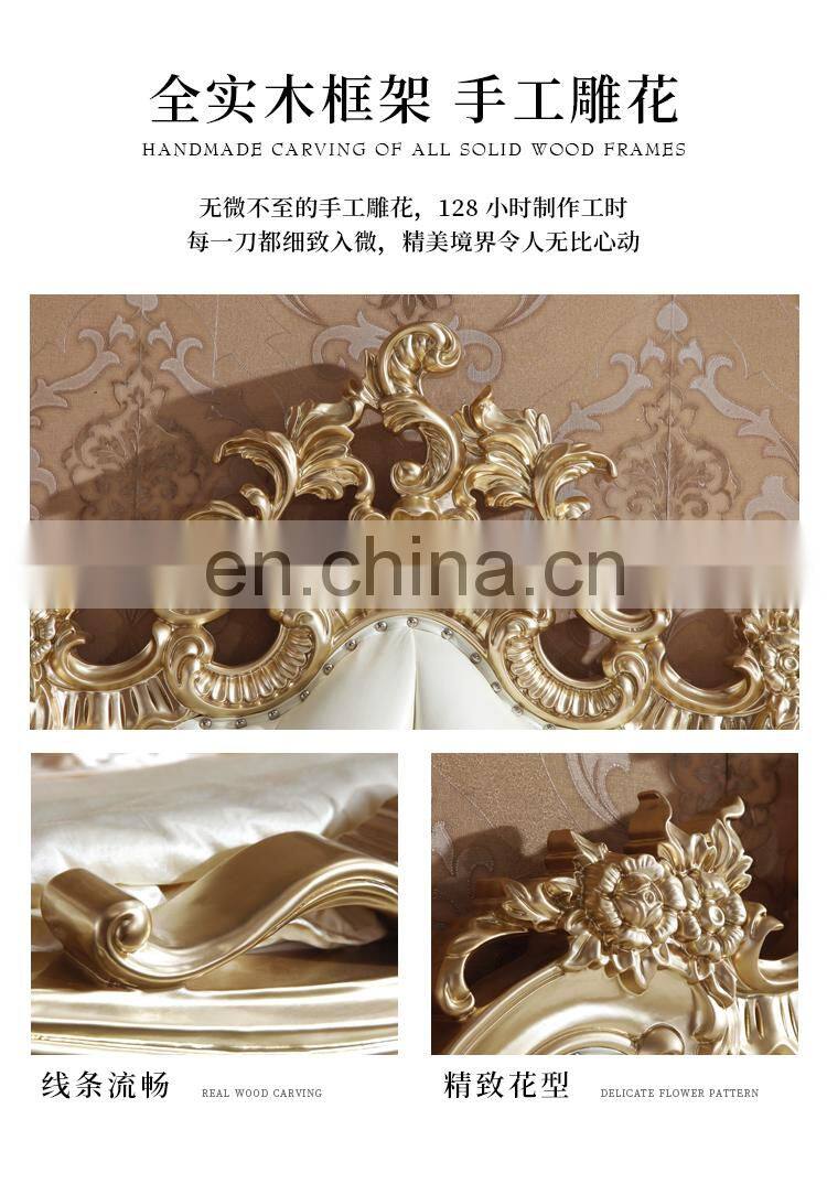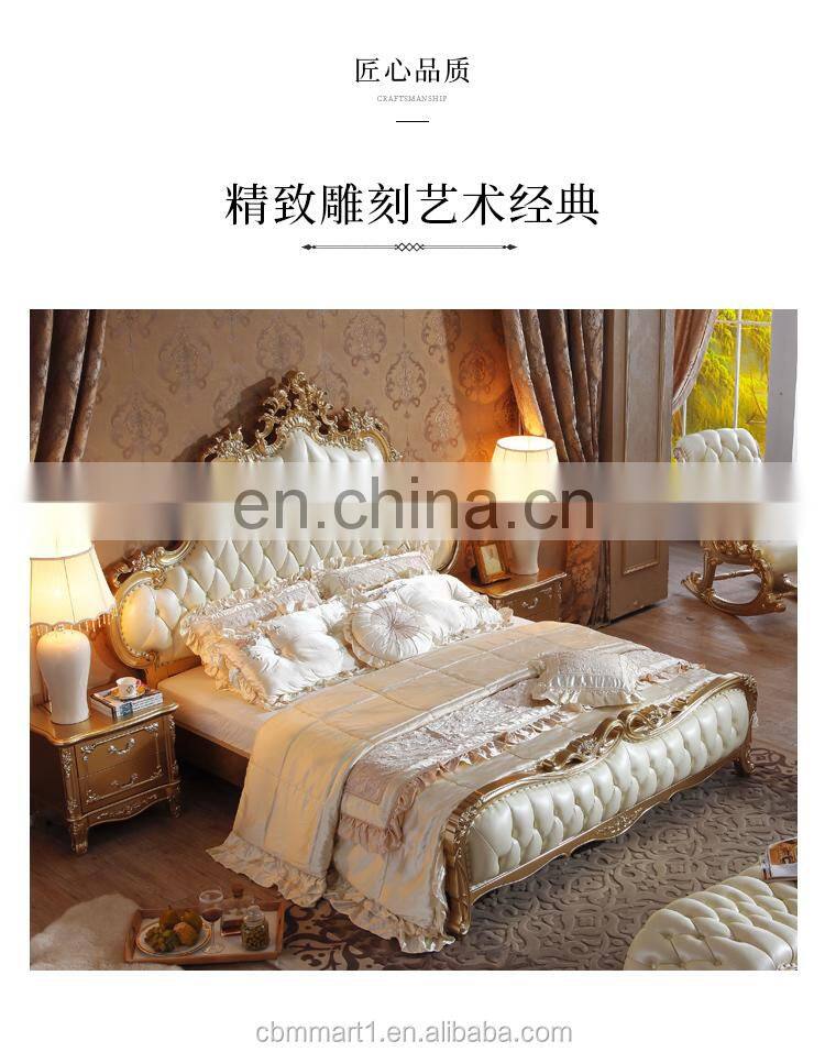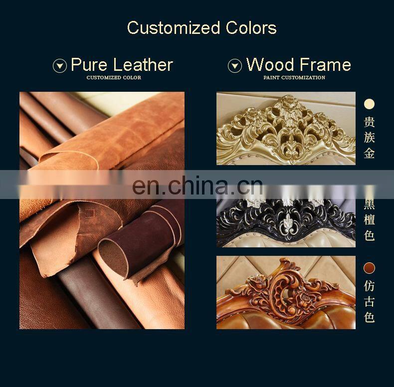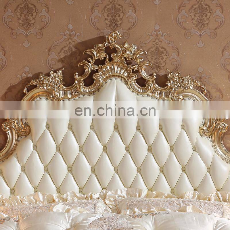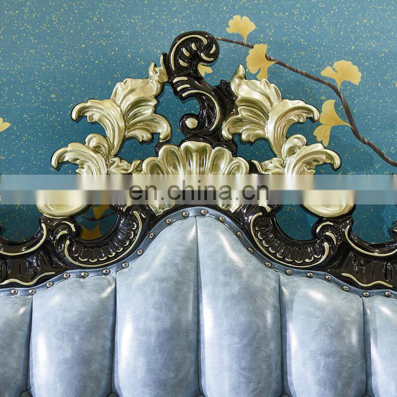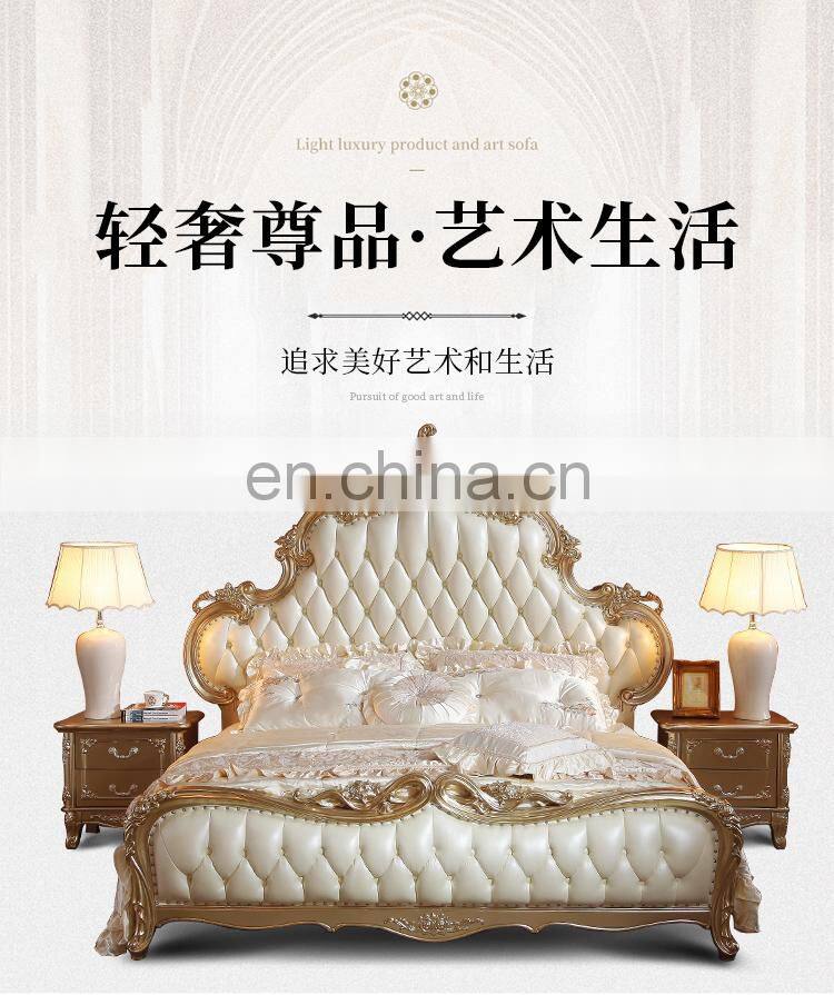 2021 New Arrivals Luxury Quality French BedrooAContemporarym Wedding King Size Wood Carving Leather Wall Bed European Style Bed