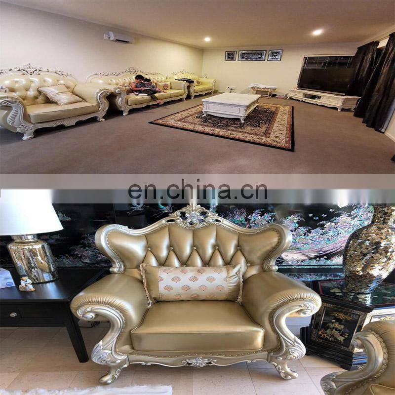 Luxury Style Antique Sofas Golden Antique Leather Living Room Sofa Set Furniture Muebles