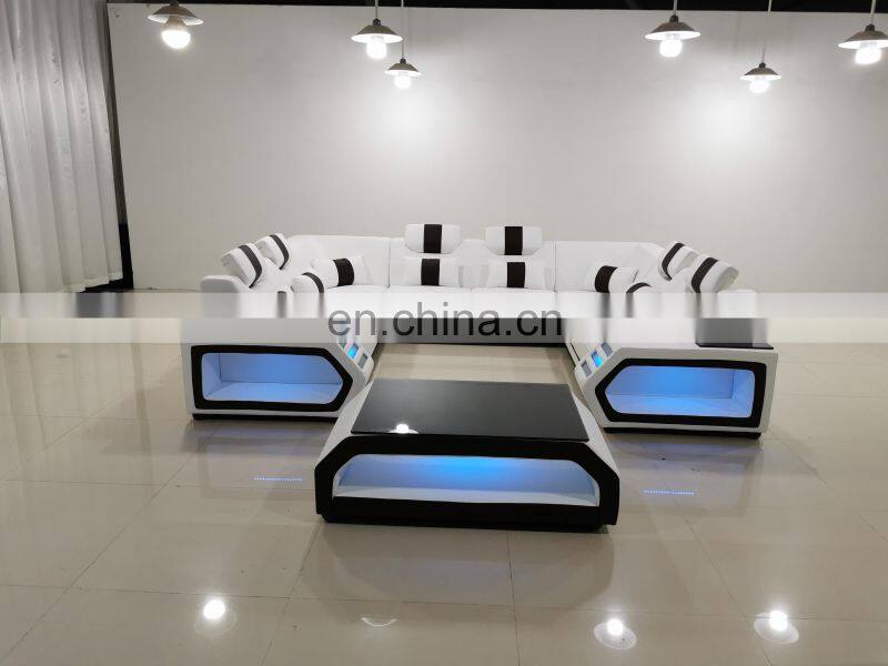 Modern U-shaped Sofa Living Room Set Furniture Leather Sofa With Lamp
