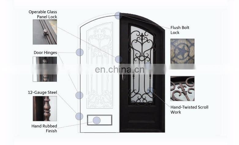 Arch Round Top Residential Cheap Steel Double Wrought Iron Entry Doors