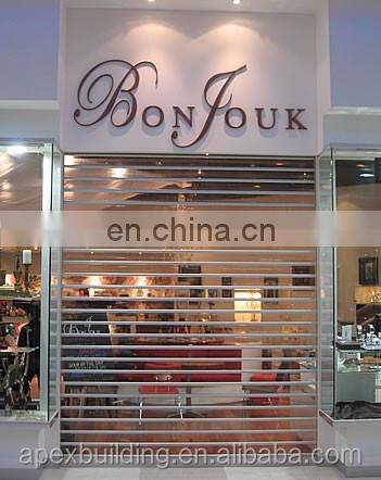 Using high transparent polycarbonate panels, with more than 80% visibility, widely used for showcase and high grade shops.