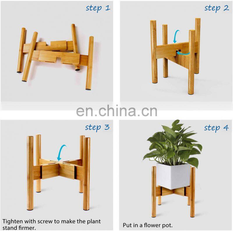 Stylish Elegant Easy To Use Adjustable Environment Bamboo Plant Pot Stand Home Decor Flower Pot Stand