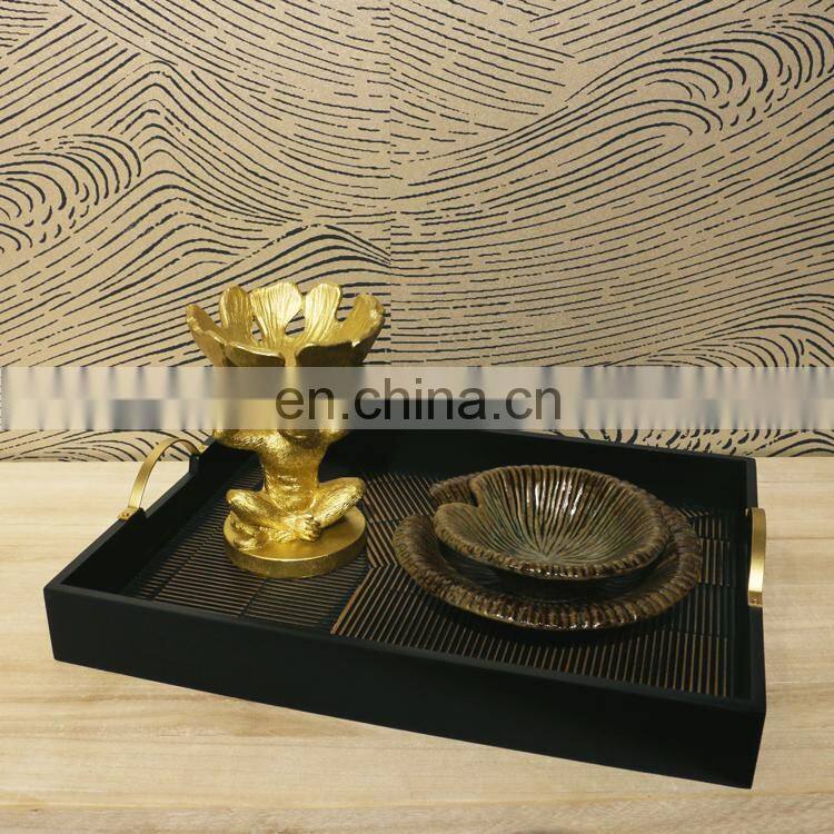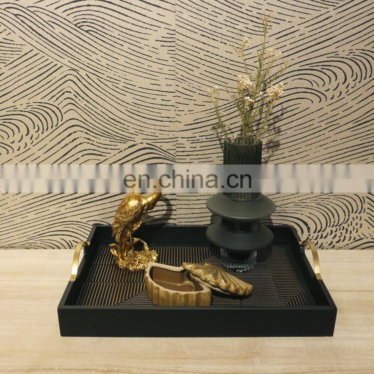 K&B Wholesale Black Rectangle Wooden Serving Tray With Metal Handle for Home Hotel Restaurant