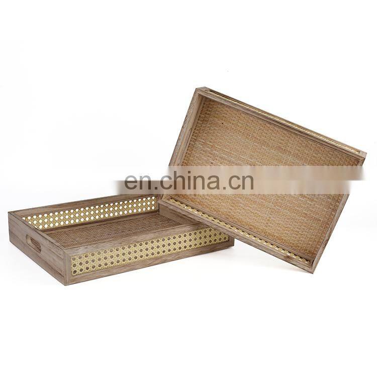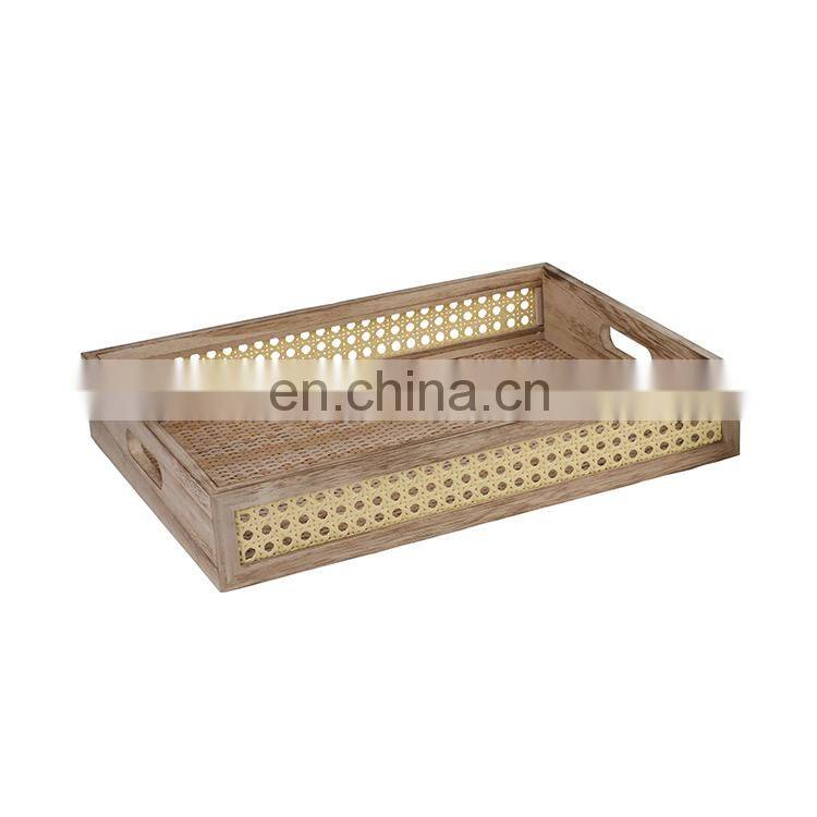 Product Name: | K&B wholesale rustic wood rattan ottoman coffee table serving tray with handles |