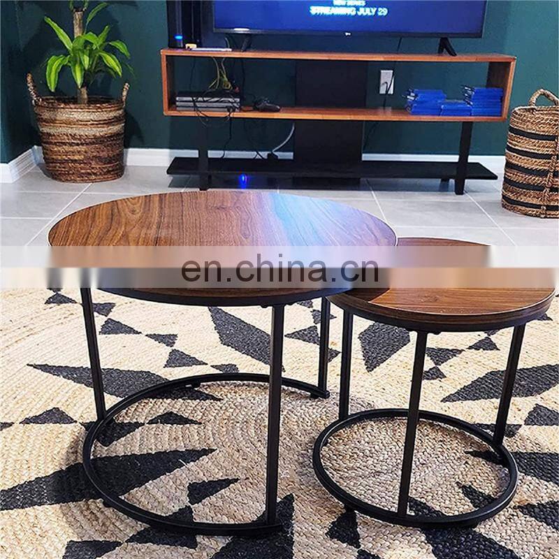 Home > Products > Wooden Table > Modern Coffee Table Nesting Side Set of 2 End Table Top Sturdy Metal Frame Wood Desk