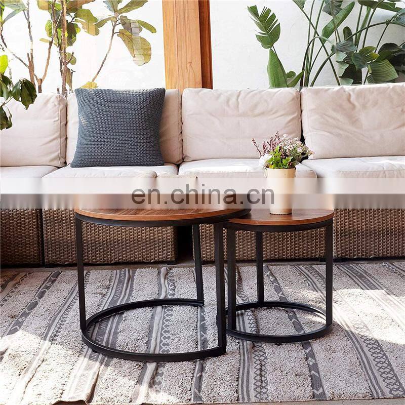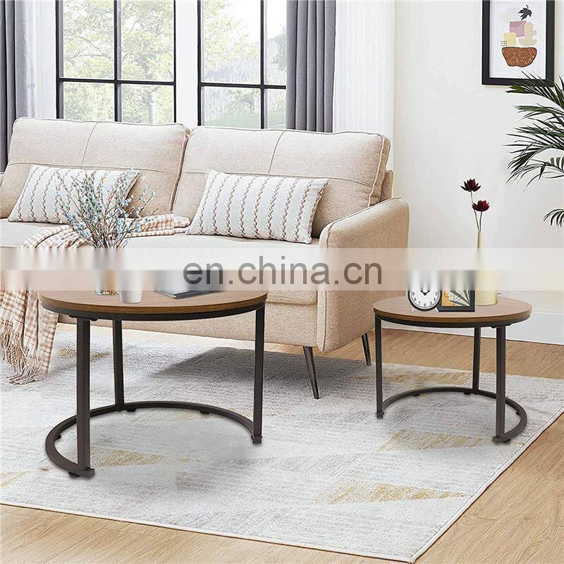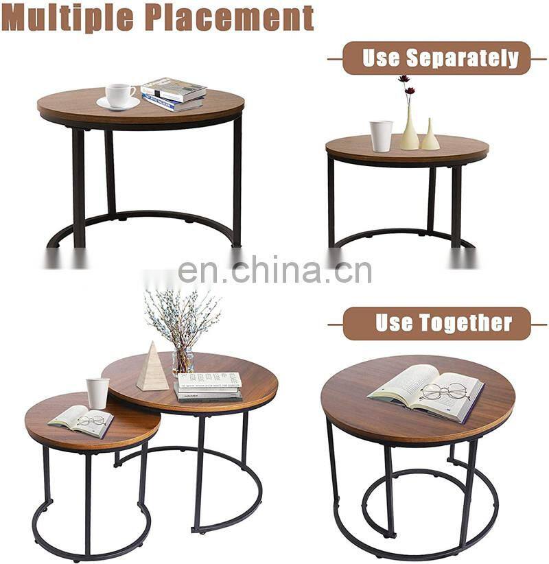 Modern Coffee Table Nesting Side Set of 2 End Table Top Sturdy Metal Frame Wood Desk