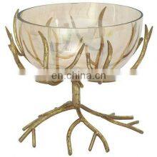 Glass Bowl With Gold Plated Metal Stand