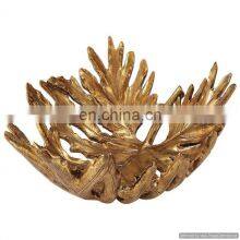 Home > Products > HOME DECOR > Wooden Bowl With Metal Flower & Leafs
