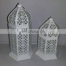 Metal Iron Cast White Finished Candle Lantern