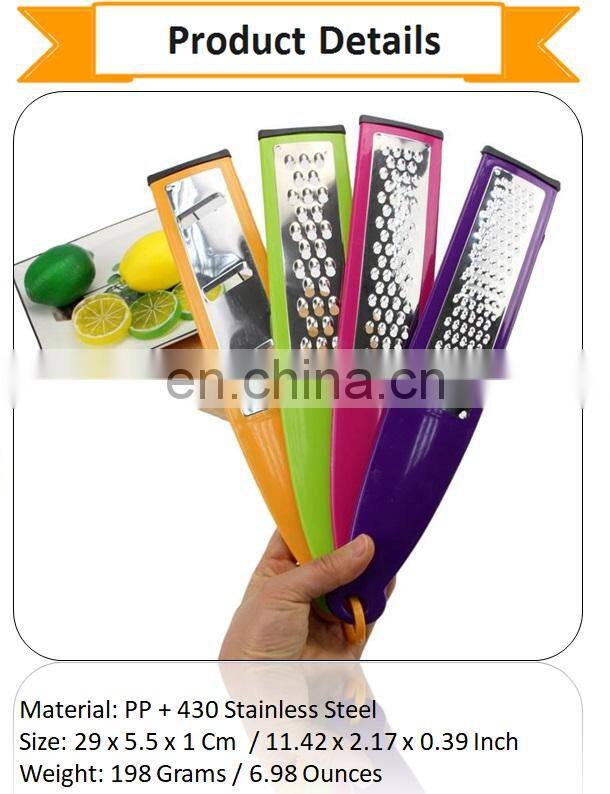 Home > Products > KitchenTools&Gadgets > High Quality 4 Color Plastic Cheese Hand Grater, Different Pattern Soft Grip Handle Grater