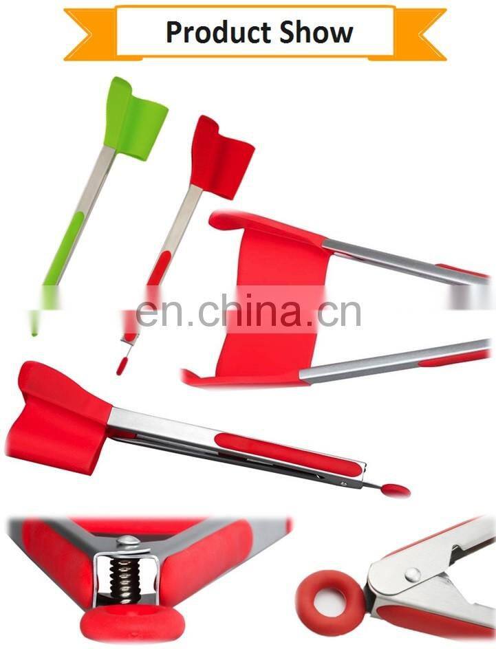 New 2 in 1 Food Grade Silicone Spatula Tongs