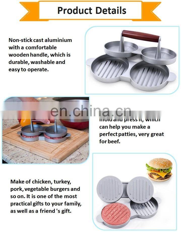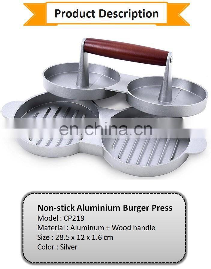 - Best Quality Wooden Handle Non-stick Aluminum Burger Press With Handle