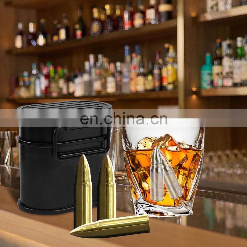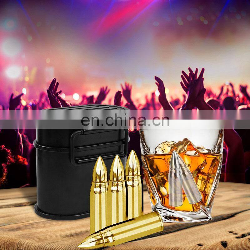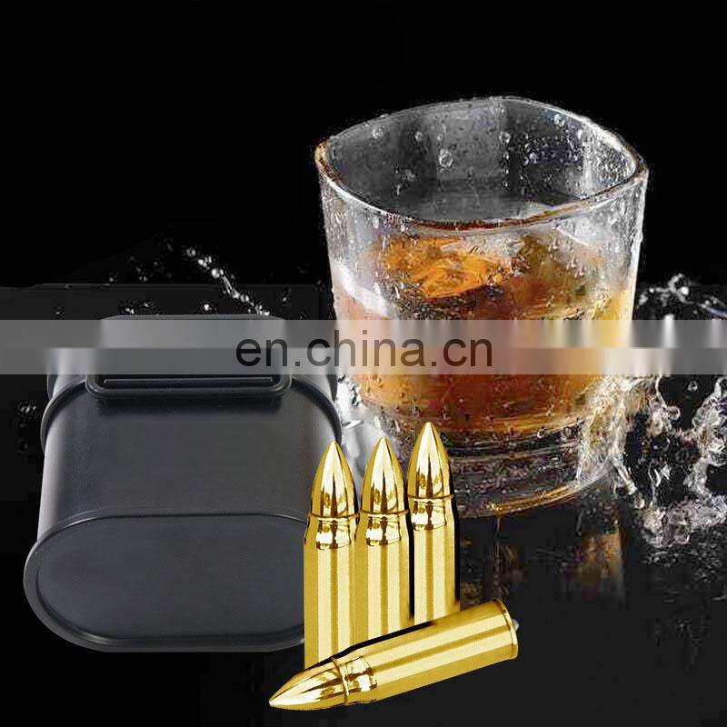 - Best Quality Whisky Italian Top Seller Bullet Shape Glow Gold Stainless Steel Ice Cube