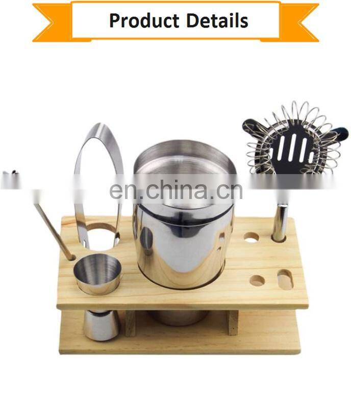 Fashionable Bar Cocktail Shaker Set With Wooden Holder