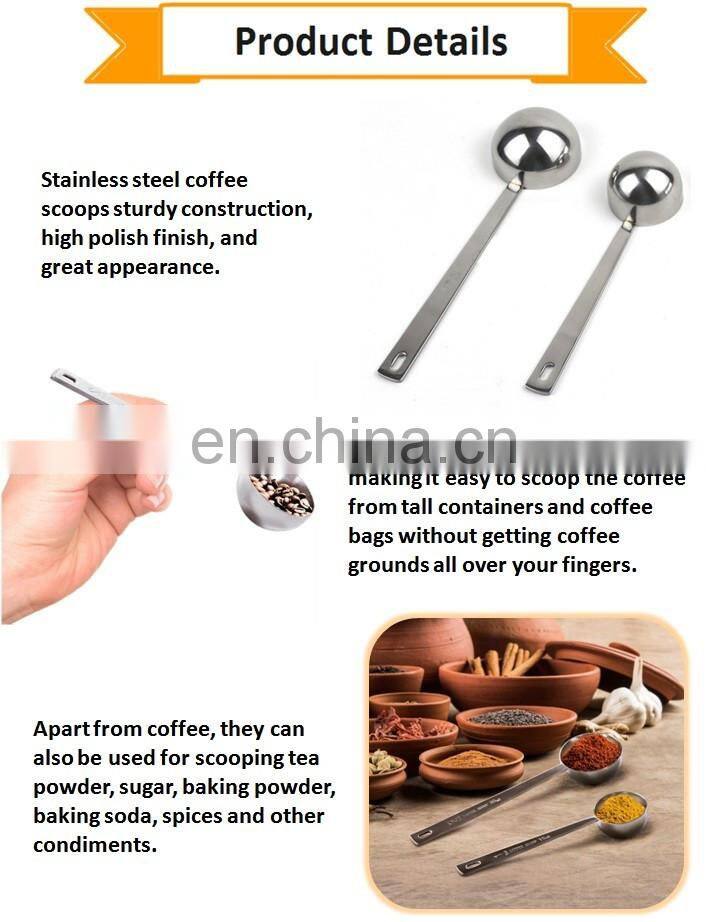 1) Stainless steel coffee scoops sturdy construction, high polish finish, and great appearance.