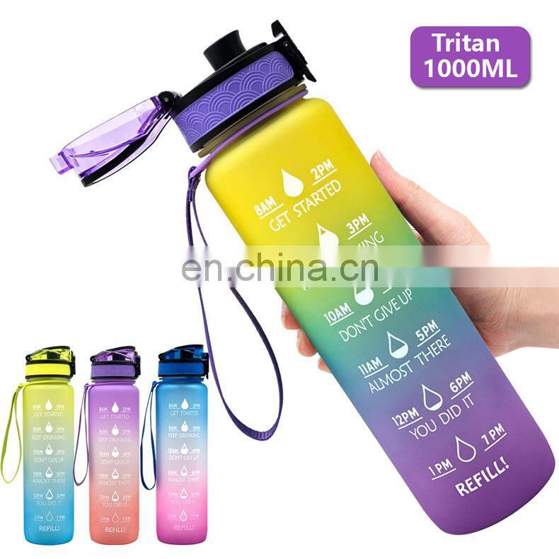2021 Ready to Ship Food Grade Gradient Color Large Size Tritan Motivational Fitness 1L Water Bottle