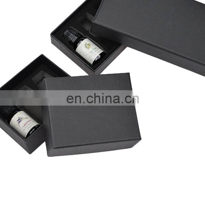Black Cosmetic Luxury Packaging for Essential Oil Ribbon Closure Sample Fragrance Box With EVA Bottom
