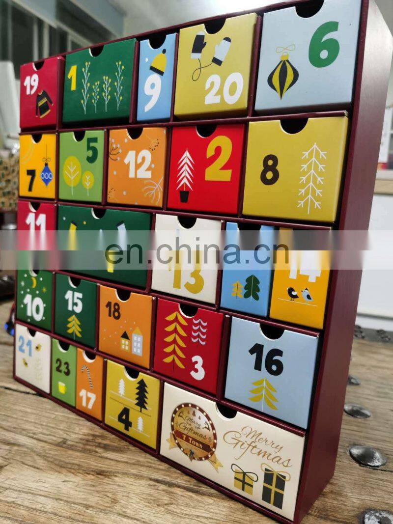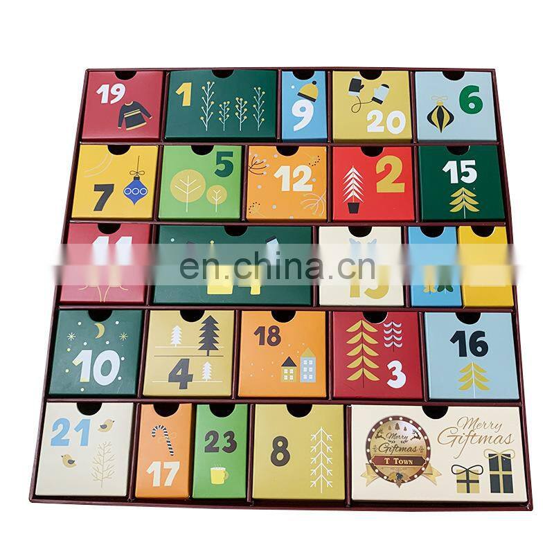 Factory Price Custom Handmade Xmas Colored Paperboard Empty Drawers Packaging Refillable Advent Calendar