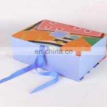 Custom Empty Magnetic Flat Pack Folding Paper Storage Packaging Box Foldable Cardboard Gift Box With Ribbon