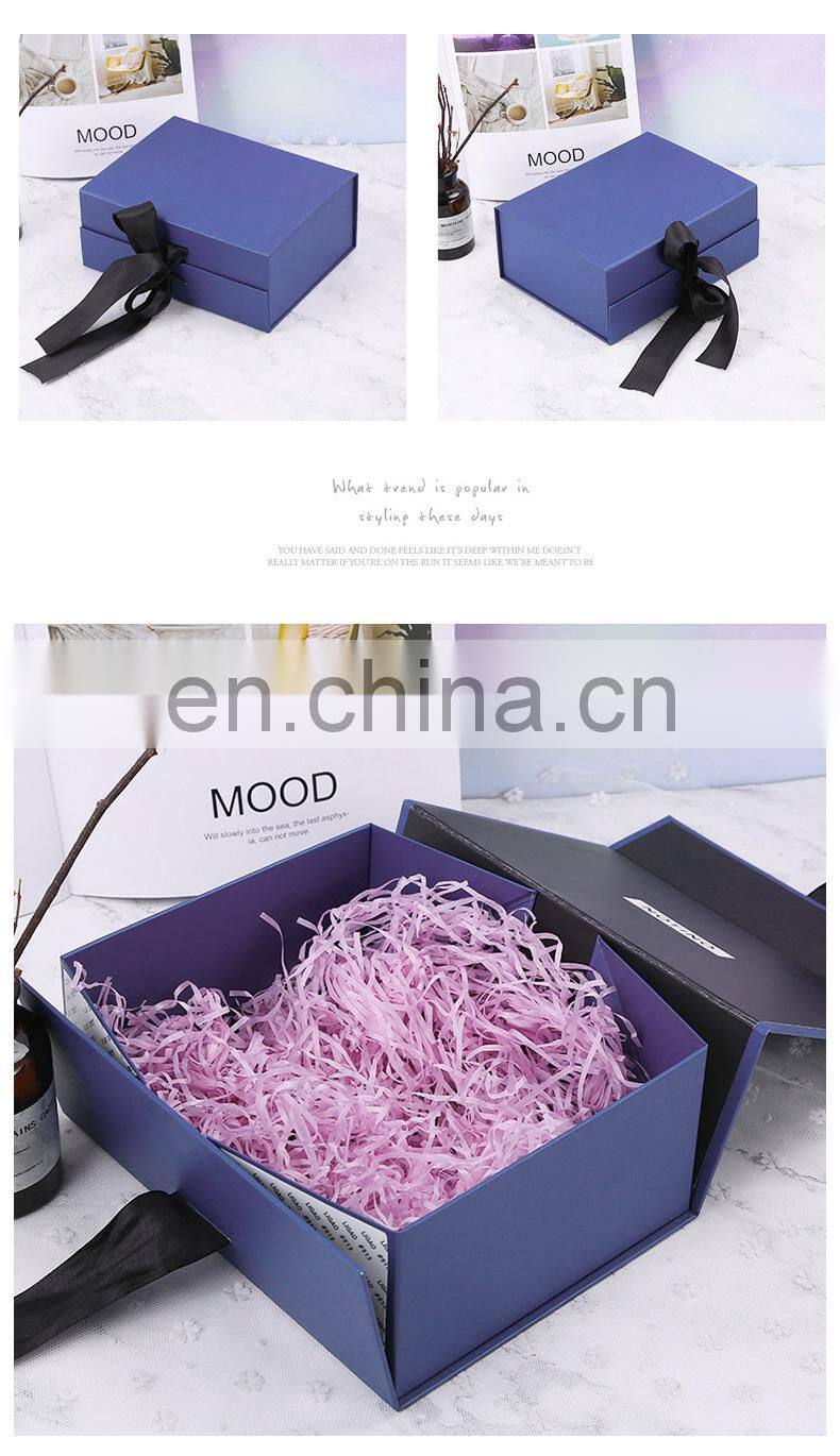Custom Printed Label Cardboard Packaging Paper Magnetic Lid Gift Boxes With Ribbon