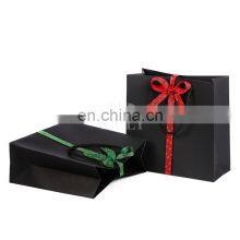 Private Label Large Size Flat Black Gift Paper Hand Bags With Nylon Handles Bulk Sale For Retail Online Sale