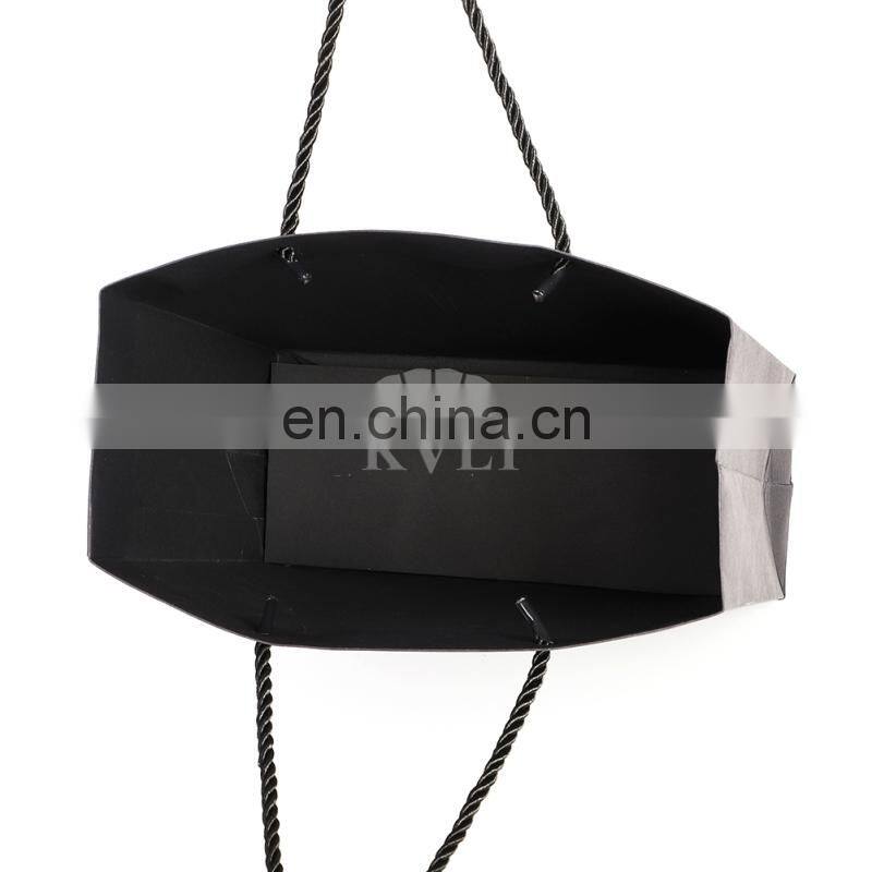 Home > Products > PAPER BAG > Private Label Large Size Flat Black Gift Paper Hand Bags With Nylon Handles Bulk Sale For Retail Online Sale