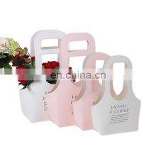 Wholesale Custom Printed High End Eco Green Flower Basket Gift Bags White Christmas Holiday Paper Bag