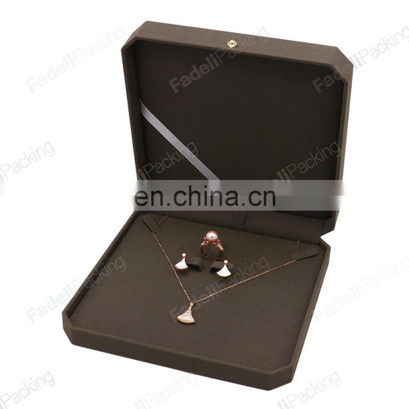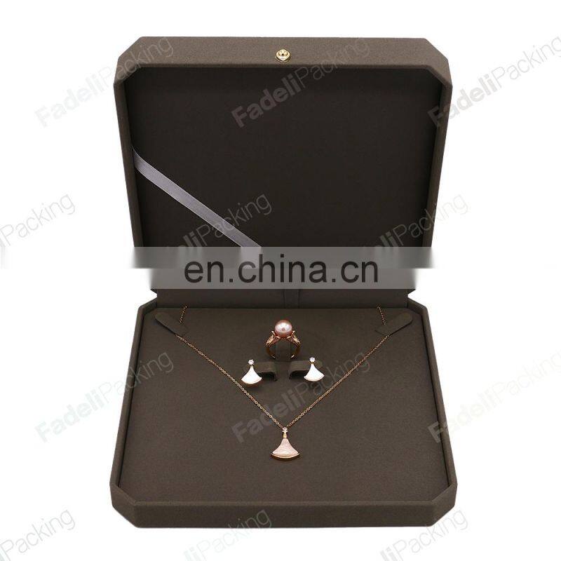 Wholesale Custom Logo Jewellery Packaging Ring Earring Necklace Gray Microfiber Jewelry Box