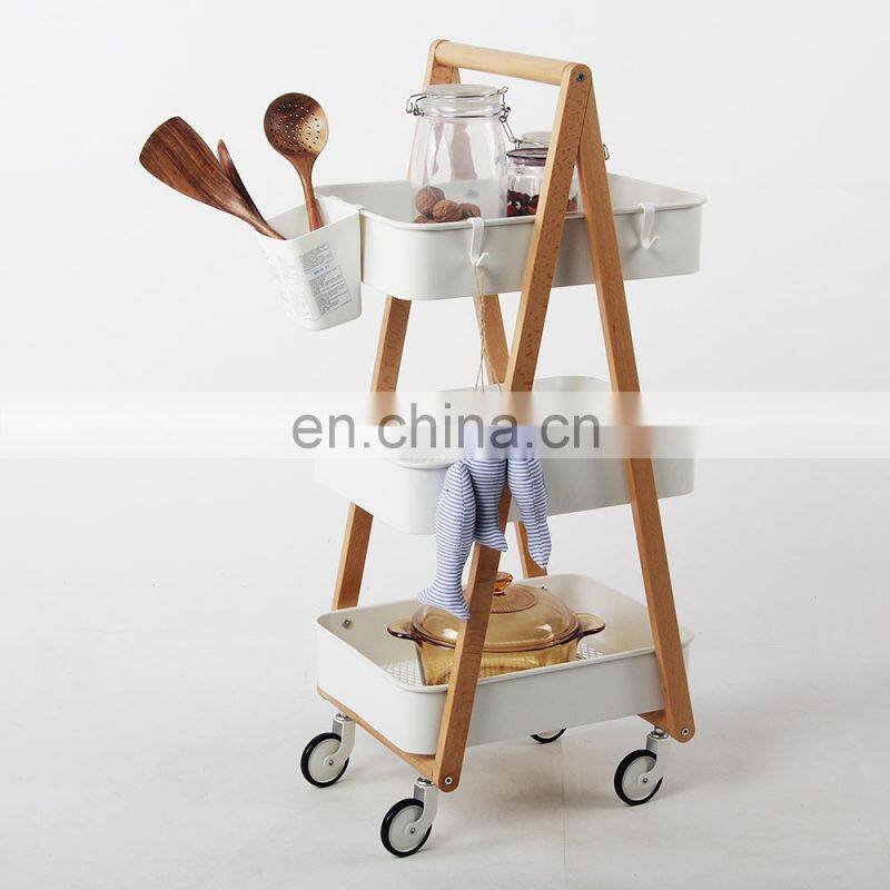 Factory Supply Provide Customization Innovative Design Kitchen Metal Beech Cart Trolley