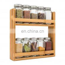 Eco-Friendly Bamboo Kitchen Cabinet Pantry Shelf Organizer Spice Rack 2 Level Storage Includes 8 Glass Jars