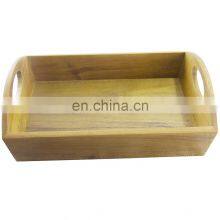 Professional Design Rectangle Acacia Food Serving Tray With Handles Set of 2