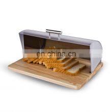 Bamboo Roll Top Bread Bin Stainless Steel Elegant Bread Box With Wooden Surface Silver